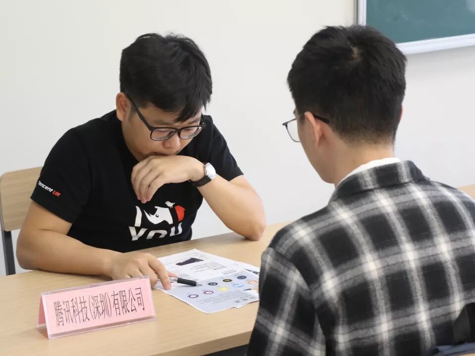 在双选会现场,专业扎实、学习能力强的学生备受青睐。腾讯科技(深圳)有限公司的面试教室前排起了长龙,几十个学生拿着简历等待面试。腾讯科技(深圳)有限公司研发管理部高校合作研究总监陈伟在面试中着重于了解学生的基础课功底、实践能力和未来职业规划。“我们团队工作对实习生要求很高,工作内容会远超他们平时的基本学习内容,难度大、很有挑战性,需要学生在常规学习外对未来职业发展有规划和准备。面试中我发现许多深技大学生都有这个意识,自主学习能力强,这点我很认可。"